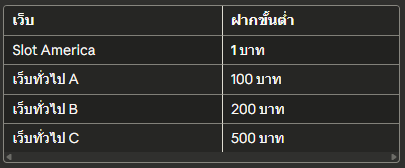 เข้าใจครับว่าบางคนอยากลองเล่นก่อนแต่ไม่อยากลงทุนมาก ที่ Slot America เราเปิดให้ ฝากขั้นต่ำ 1 บาท ได้เลย