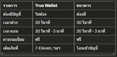เปรียบเทียบ True Wallet vs ธนาคาร