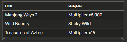เกมเหตุผลMahjong Ways 2Multiplier x5,000Wild BountySticky WildTreasures of AztecMultiplier x15